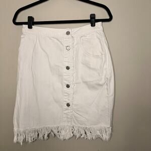 Pilcro and the letterpress midi knee length white jean button up skirt 6
