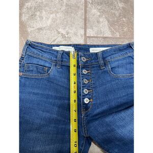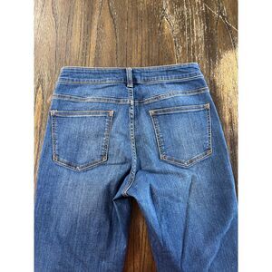 Crafted in a classic medium blue wash, the soft stretch denim hugs in all the right places and offers comfort without sacrificing style. This size 28 Tall option gives extra length for a long-legged fit—perfect with heels, boots, or platforms.