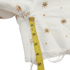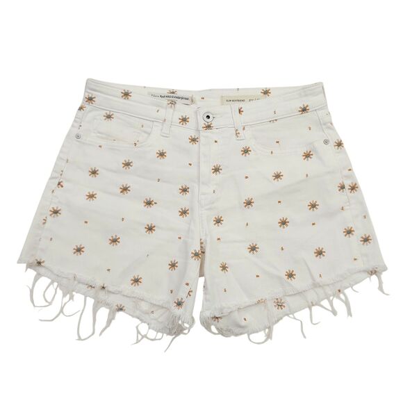 Pilcro by Anthropologie Jean Shorts Womens 27 White Cut-Off Stretch Embroidered