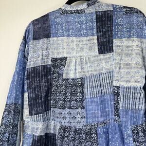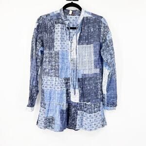 Pilcro by Anthropologie Patchwork Boho Bandana Printed Button Front Cotton Top