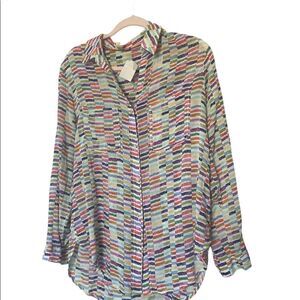 Anthropologie Pilcro Viscose Colorful Button Up Long Sleeve Blouse Brushstroke Button-Down Blouse | Size S