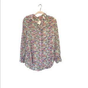 Pilcro by Anthropologie Rainbow Brushstroke Button-Down Blouse | Size S