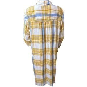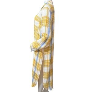 Pilcro by Anthropologie Side-Slit Maxi Tunic Button Down Plaid Size Large