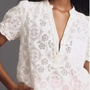 Pilcro by Anthropologie The Aly Puff-Sleeve Sheer Blouse Off White Size LP