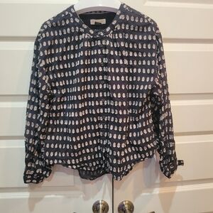 gray lightweight blouse with long sleeves, arrow embroidered design in very good conditions, no stains or tears.
