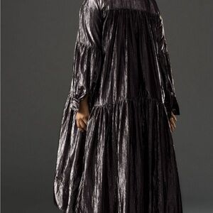 Long-Sleeve V-Neck Metallic High-Low Dress