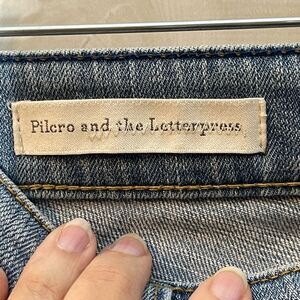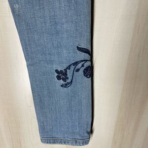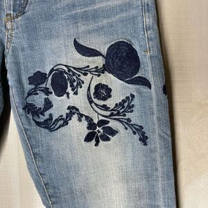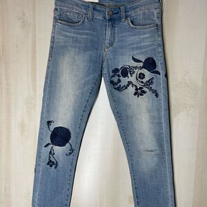 Pilcro jeans light wash with navy embroidered floral details, size 30, size 8/10