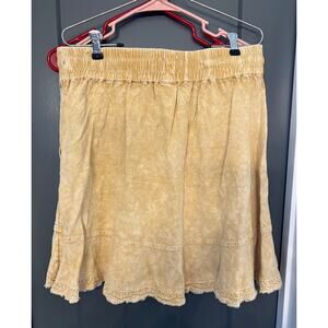 Pilcro skirt yellow size large. Knee length or above knee. Front patch pockets. Elastic waist with draw string. Raw hem.