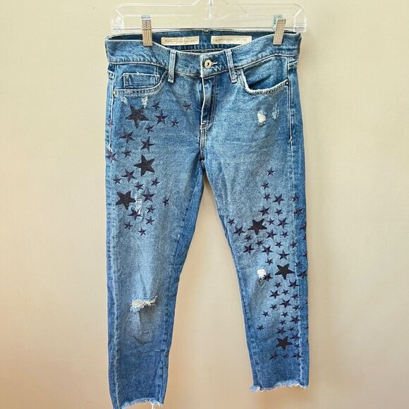 Pilcro & the Letterpress Embroidered Star Boyfriend Distressed Straight Jeans sz