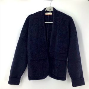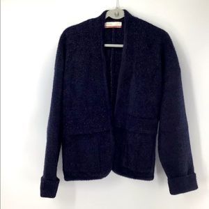 Anthropologie Pilcro & Letterpress Navy Blue & Metallic Silver Cardigan One Size Fits Most. Super Butter Soft feel and Stretchy. Two Pockets