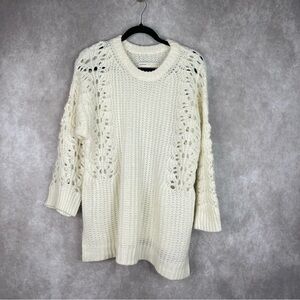 Pilcro x Anthropologie Devenne Pointelle Pullover Ivory Sweater Women's Size XS