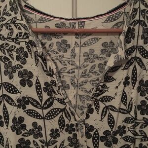 Very pretty v-neck from a collab between Pilcro and Press Relief. Black floral and leafy print on an off-white background. Scooped hem. Interesting seam details. Super soft and lightweight, great for layering, can be dressed up or down. Purchased at Anthropologie. NWOT.