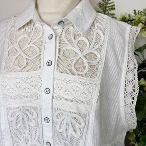 Pilcro Crop Swing Blouse in White Eyelet Lace | new nwt | large