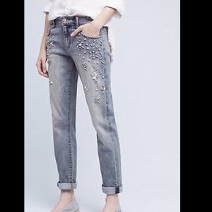 Anthropologie Pilcro medium Distress Jewel Rhinestone Mid Rise Crop Jeans