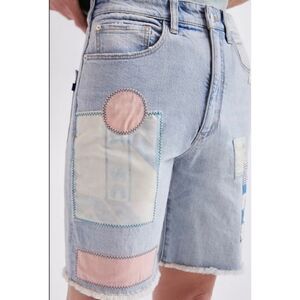 Pilcro Ultra High-Rise Patchwork Denim Bermuda Shorts