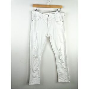 Pilcro and The Letterpress Anthropologie White Crop SLIM BOYFRIEND Distressed Je
