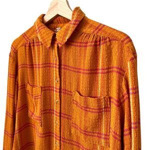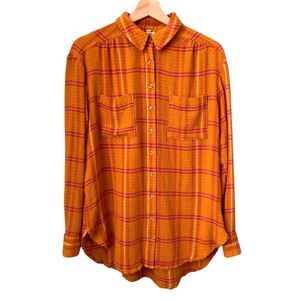 Pilcro x Anthropologie Vibrant Orange and Pink Front Button Top in Size S