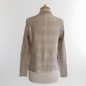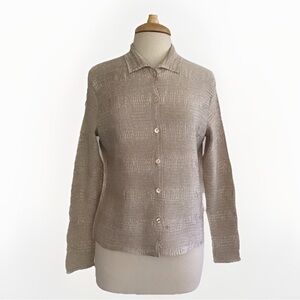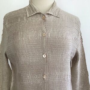 Pile Ou Face Paris Y2K Crinkle Pleated Stretch Gold Knit ButtonUp Blouse OS EUC