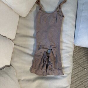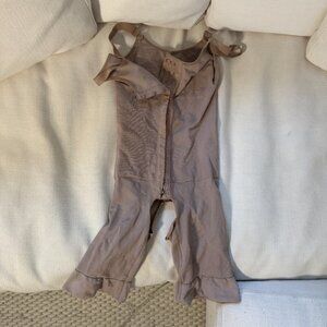 Contour, recover, and sculpt with this taupe Pile post-op faja, designed for firm compression and all-day comfort. Featuring an adjustable front hook-and-eye closure, supportive straps, and a mid-calf fit, this garment offers superior shaping and support — perfect for post-surgery recovery, waist training, or daily wear.