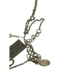 Pilgrim Danish Design Vintage Flower & Gem Necklace 16” Silver Tone Chain