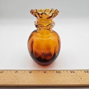 Pilgrim Glass Bud Vase Honey Amber Hand Blown Art Glass Ruffle Rim Vintage