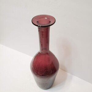 Pilgrim Glass Hand Blown Bottle Decanter, 13" Crackle Art Amethyst Purple MCM