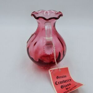 Pilgrim Glass Handblown Cranberry Vase Pitcher Optic Clear Handle 4.5 In Tag