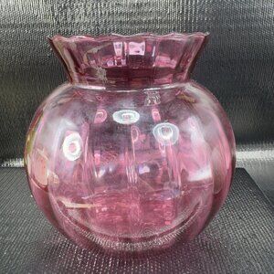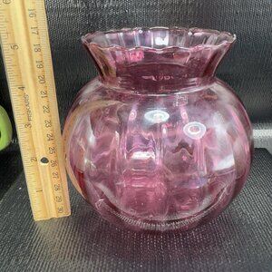 Pilgrim Glass Ribbed Cranberry Vase Candle Holder Votive Glassware Vintage Decor