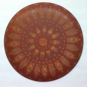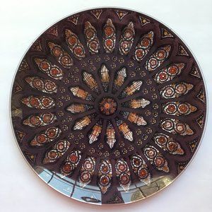 Pilgrim glass silhouette server plate platter, stained glass design, round platter plate, brand new in open box.