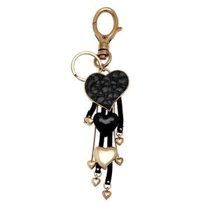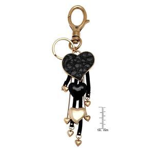 Pilgrim Goldtone and Black Leatherette Heart Charm Key Chain