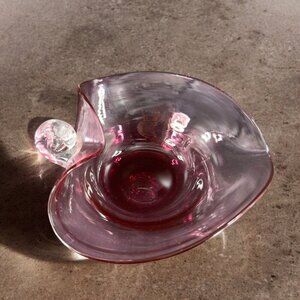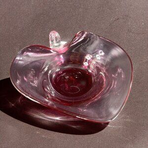Pilgrim Heart Shaped Nappy Handle Cranberry Glass Dish Hand Blown Glass W Handle