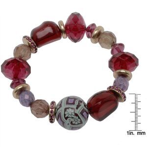 This Pilgrim bracelet features multicolor and multi-shaped beads and a large round patterned bead in the center.
