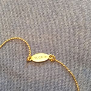 White 🍇......24 inch gold tone chain that is closed (no clasp) with a individually pinned cluster of articulated white grapes that drop just past an inch by Pilgrim Danish Design.