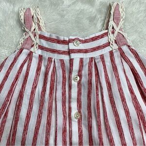 Pre owned authentic Pili Carrera Baby's Sleeveless Striped Pleated Red Dress & Brief Set Size 12Months. Brief has undone seam. Dress have some spots. Please look at pictures for better reference. Happy Shopping! NFEB23. B7
