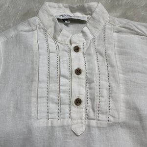 Pre-owned authentic Pili Carrera Kid's White 1/2 Button Down Long Sleeve Linen Cotton Shirt Size 5. Great condition. Please look at pictures for better reference. Let me know if you have any other questions. Happy Shopping! NJUN25. B12