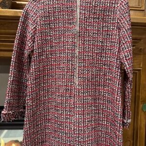 Pili Carrera red burgundy and blue wool dress size 14 with zipper on the back and side pockets. 6 original brass buttons.