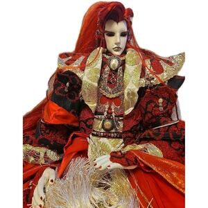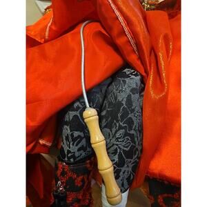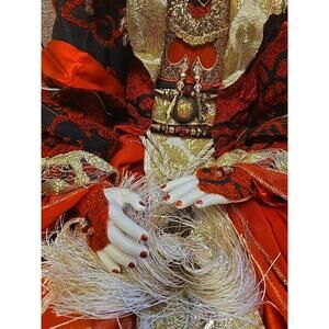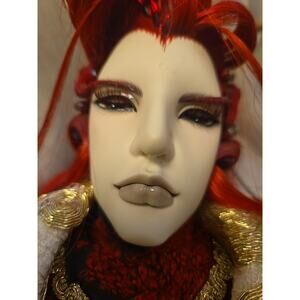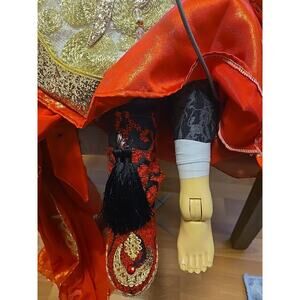 Smoke-free petfree home. Beautiful detail throughout. Approx 39" from feet to top of hair. Eyes close when pulling string. Glass eyes. Puppet control stick is bendable. See last pic for operation instructions. Large elaborate costume.