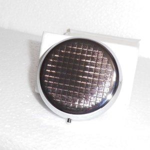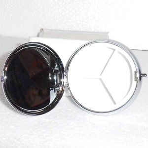 Beautiful Leaf Butterfly with other vibrant colors on the box/case. Inside it has a mirror & 3 compartments for vitamins, aspirin or medications. The rim is silver tone & the bottom is silver tone too. Excellent Condition - Never Used. Can be an excellent gift.