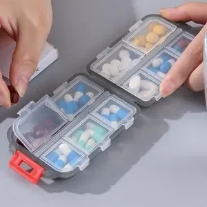 With 10 compartments, this small pill case can hold all your pills for a full week.