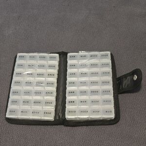 Convenient Pill Organizer. Looks like a book when closed.