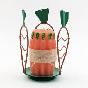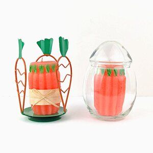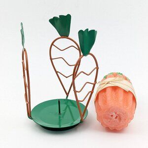 Pillar Candle w/ Holders Carrot Metal Glass Egg Set of 2 Easter Spring Decor