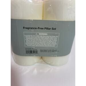 Pillar Candles & Candleholders bundle Fragrance free Green metal w leaf motif