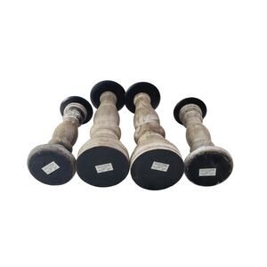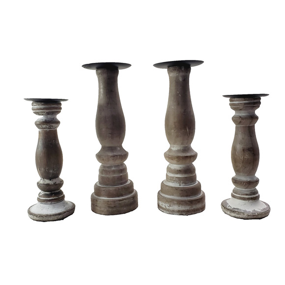 Pillar Whitewash Distressed Wood Candle Holders Set of 4 Farmhouse Decor Style