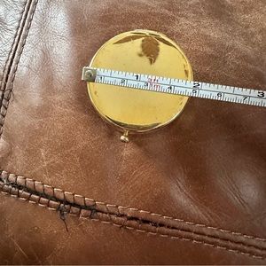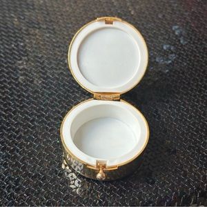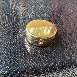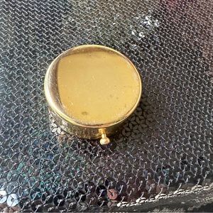 Gold rond pillbox with lining. Was used as a sample. A little scratch but still beautiful.