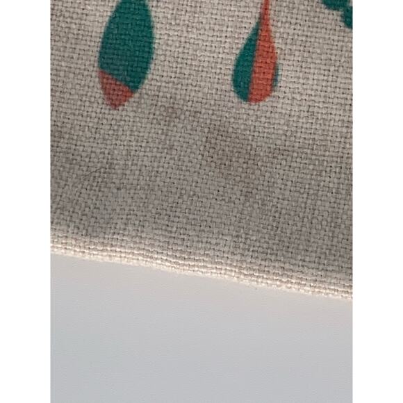 This canvas pillow cover in oatmeal color features a colorful chandelier design on the front. Measuring 23 x 23 inches, it has a zippered opening for easy decor changes and laundering. Currently, there are some soil marks visible in pictures 3, 4, 6, and 8, which likely can be removed with washing. Perfect for adding a touch of elegance to your home decor.