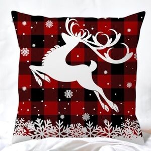 This decorative Winter Holiday Cover features a Deer and Snowflakes on a Buffalo Plaid Check Red and black Background. Pillow Cover. This Farmhouse Style Cover will accent your winter decor and will be a uniquely classic festive addition to your Christmas Holiday decor.