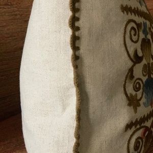 Richly hand embroidered with wool yarn on hemp linen. Cushion cover from Hungary, vintage.