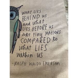 17” x 17” Pillow Cover burlap material with Inspirational message by #Ralph Waldo Emerson #owl #heart