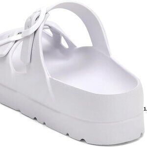 Enjoy comfort and practicality with these unisex pillow slides. Designed with a cushioned EVA (Ethylene Vinyl Acetate) sole, they provide lightweight support and long-lasting comfort. The adjustable buckle closure ensures a secure, personalized fit, while the water-resistant design makes them perfect for showers, pools, beaches, or everyday home wear. Made in the USA or imported, these slides are a versatile choice for both women and men.
