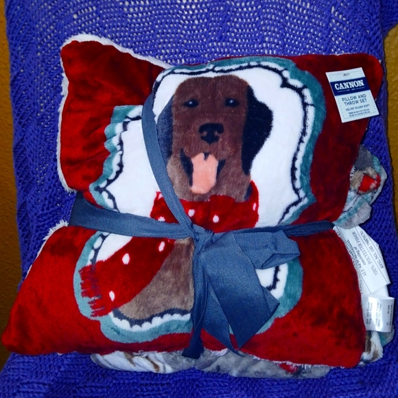 Charming dog design on a soft pillow & throw set. Perfect for pet lovers.